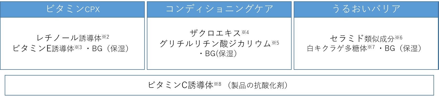 ※6 (メタクリル酸グリセリル/メタクリル酸ステアリル)コポリマー ※7 シロキクラゲエキス ※8 リン酸アスコルビルMg