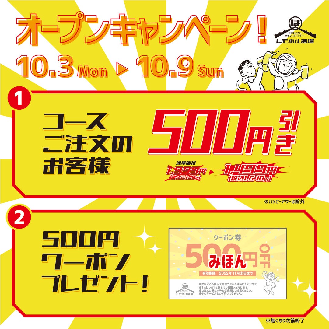 レモホル酒場石橋阪大前オープンを記念し、キャンペーンを実施いたします。