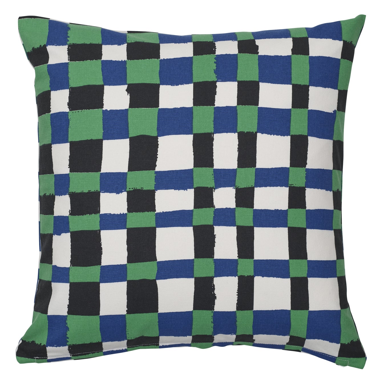 このチェック柄は、先鋭的なデザインを好む人々にぴったりです。ブルー、グリーン、ホワイトの色合いは、ほかのテキスタイルと組み合わせるのが簡単。