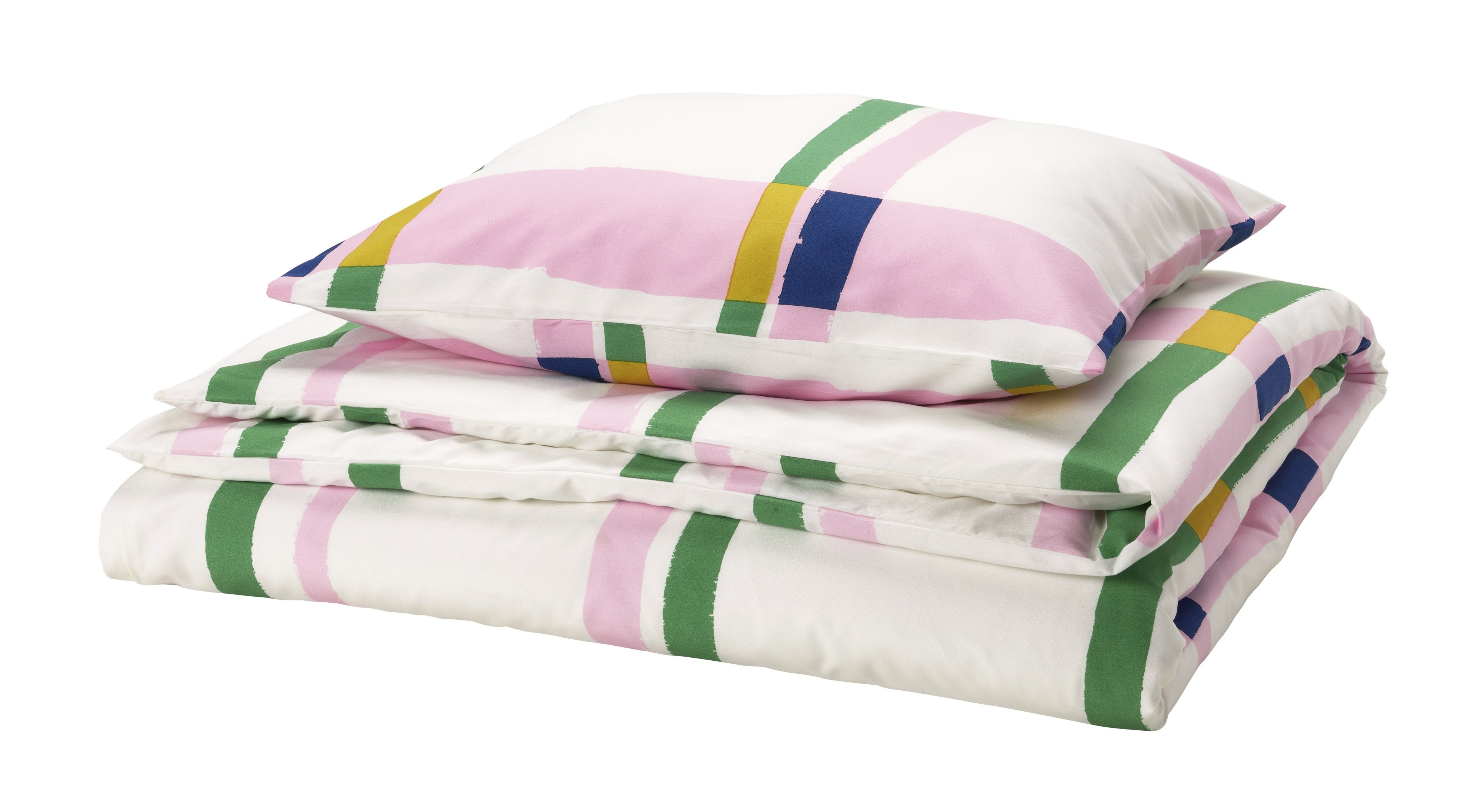 手描きのチェック模様が描かれたこのマルチカラーの掛け布団カバーセットは、活気ある雰囲気を演出します。軽量でシワになりにくいポリエステル/ビスコース混紡の布地は、なめらかで長持ちする素材です。上品な光沢があり、ベッドをエレガントにカバーします。ポリエステルはリサイクル含有率100%です。