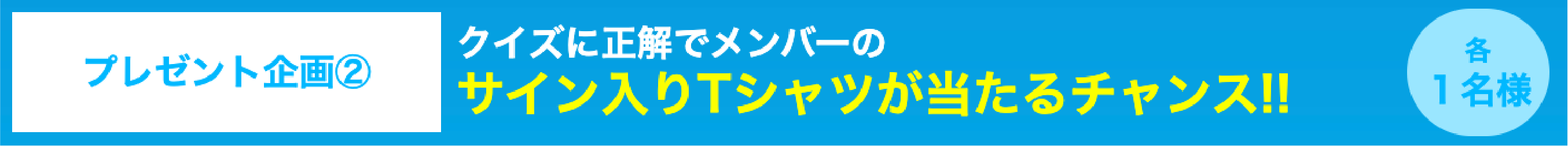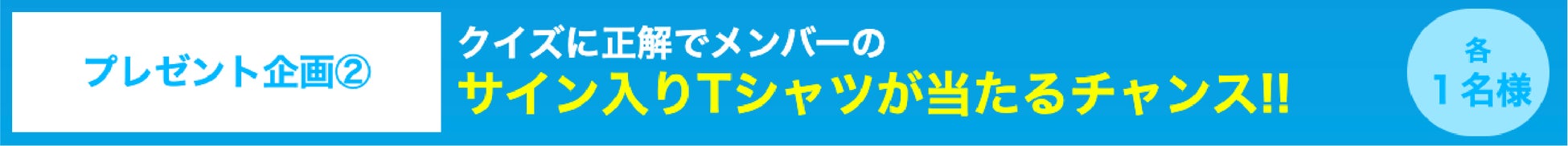 Tシャツのデザインをしたメンバーを予想し、特設ページ内の「クイズ応募」ボタンからツイッター投稿すると正解者の中から1名様にメンバーのサイン入りTシャツが当たります。