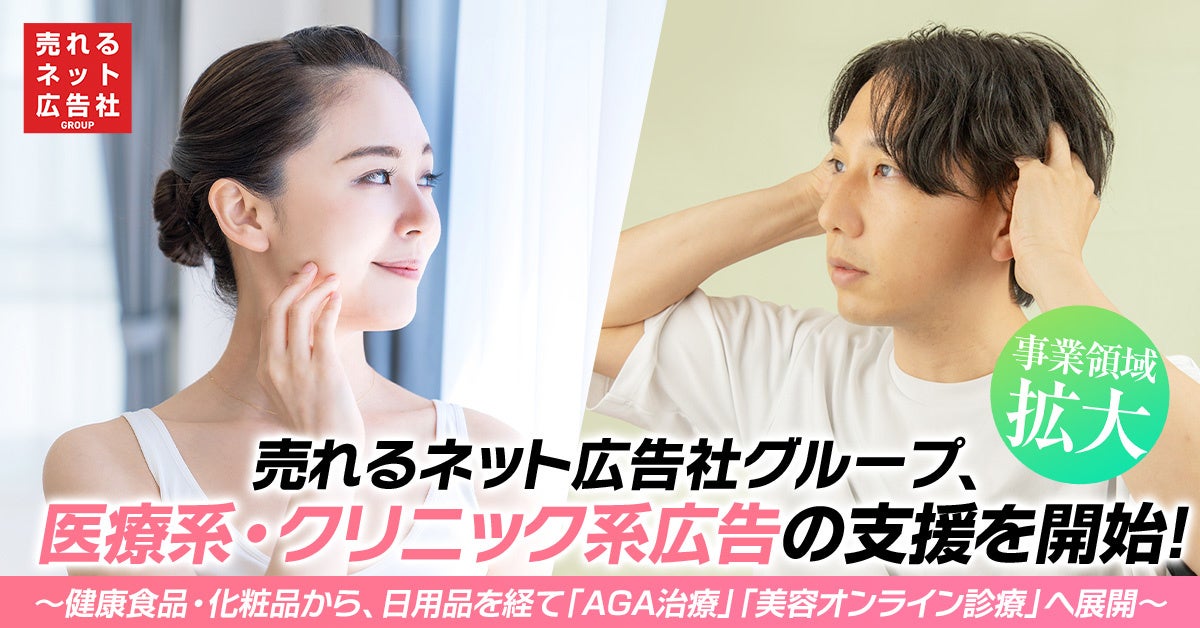 【事業領域拡大】売れるネット広告社グループ、医療系・クリニック系広告の支援を開始!~健康食品・化粧品から、日用品を経て「AGA治療」「美容オンライン診療」へ展開~