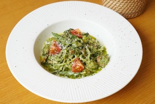 山梨県産の旬の野菜を使用したジェノベーゼパスタ。鮮やかな見た目はもちろんのこと、地元の風土や旬の味わいを楽しめる贅沢な一皿です。
