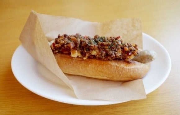 粗挽きソーセージのホットドッグに、甲州ワインビーフを使用したチリソースをトッピング。ボリューム満点、トマトの濃厚な味わいがクセになる特別感のあるホットドッグです。