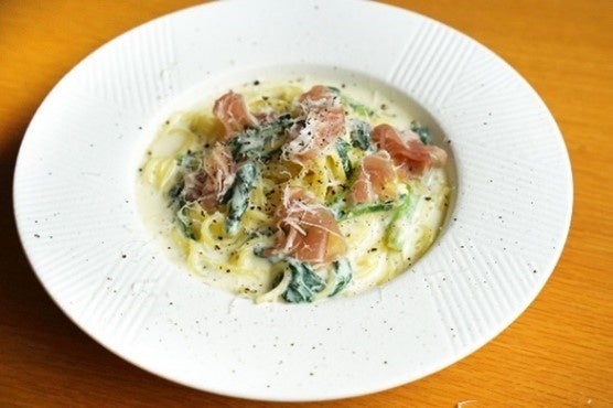 ●あけぼの大豆と生ハムの豆乳クリームパスタ