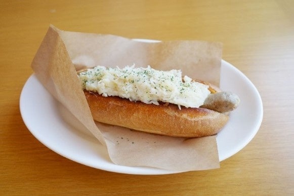 山梨県南アルプス市『ベーカリールーブル』のパンと、上野原市で作られる『hayari』の粗挽きソーセージを使用したホットドッグ。小麦の香り豊かなバンズと、マジョラム香る自然派ソーセージの組み合わせをお楽しみください。