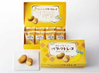 東京ばな奈ならではの優しいバナナ⾵味はそのままに、バターの⾹りいっぱいにしっとりと焼き上げました。中にはフルーティーなバナナコンフィチュールもとじこめて。 ⼝いっぱいに広がるバターの⾹りに バナナの美味しさがとろけあう、とってもグルメなマドレーヌです。