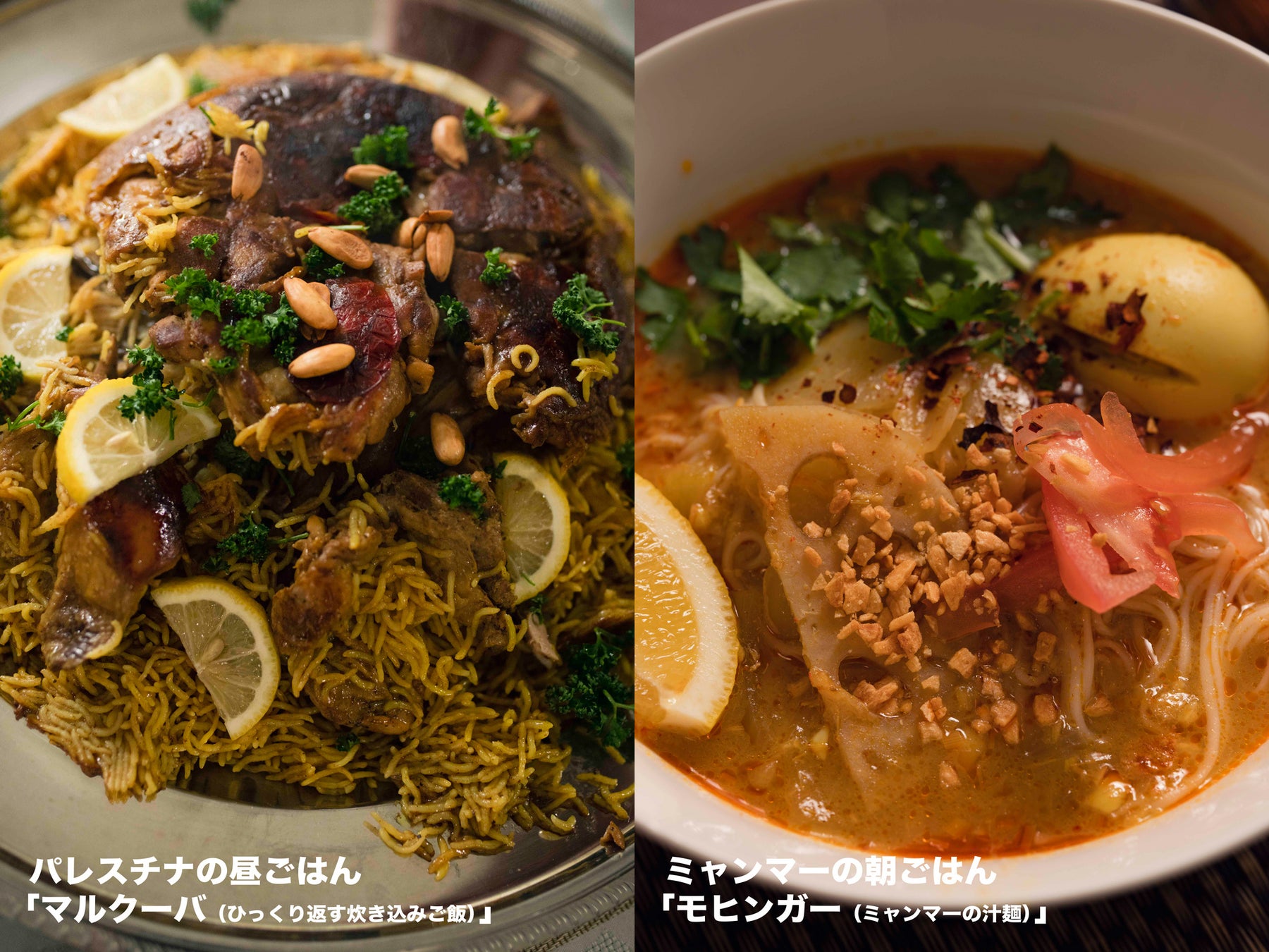 日本では朝、昼、晩の3回の食事が一般的ですが、昼を食べずに2食の国があったり、農村部と都市部では食べるものが違う国、朝から肉をガッツリ食べる国、断食のある国。また風土により、恵まれた食材が手に入る国、貧しい食材では反対に知恵を絞り、ひとつの食材から多くの料理を編み出す国など。