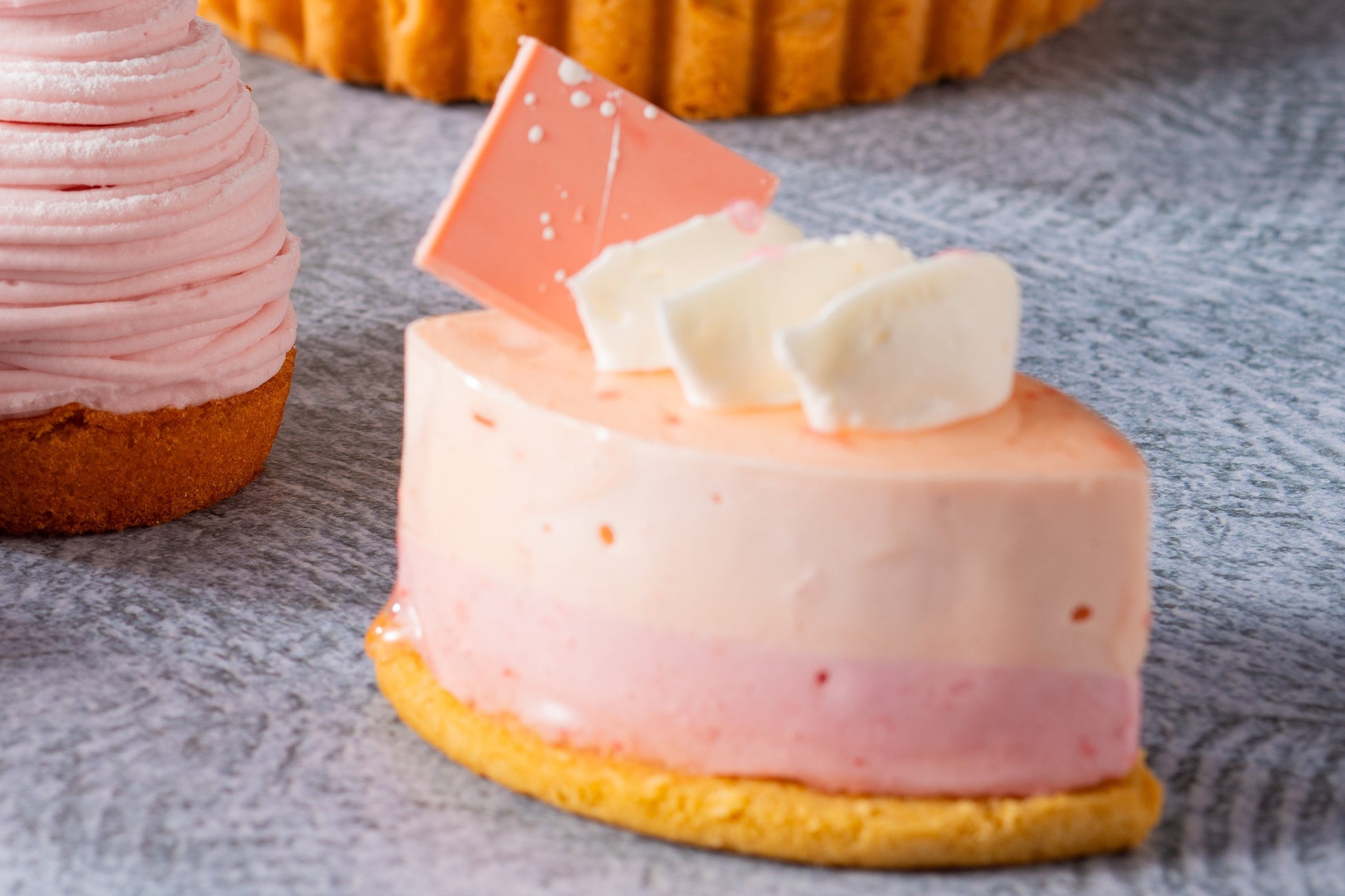 桜といちごのモンブラン同様、シェフパティシエ本多浩二が考案した商品です。ポイントは、桜の花びらをイメージした紡錘形のフォルムと、2色のムースが織りなす美しいコントラスト。爽やかな酸味が絶妙に調和し口いっぱいに春の香りが広がる一品です。