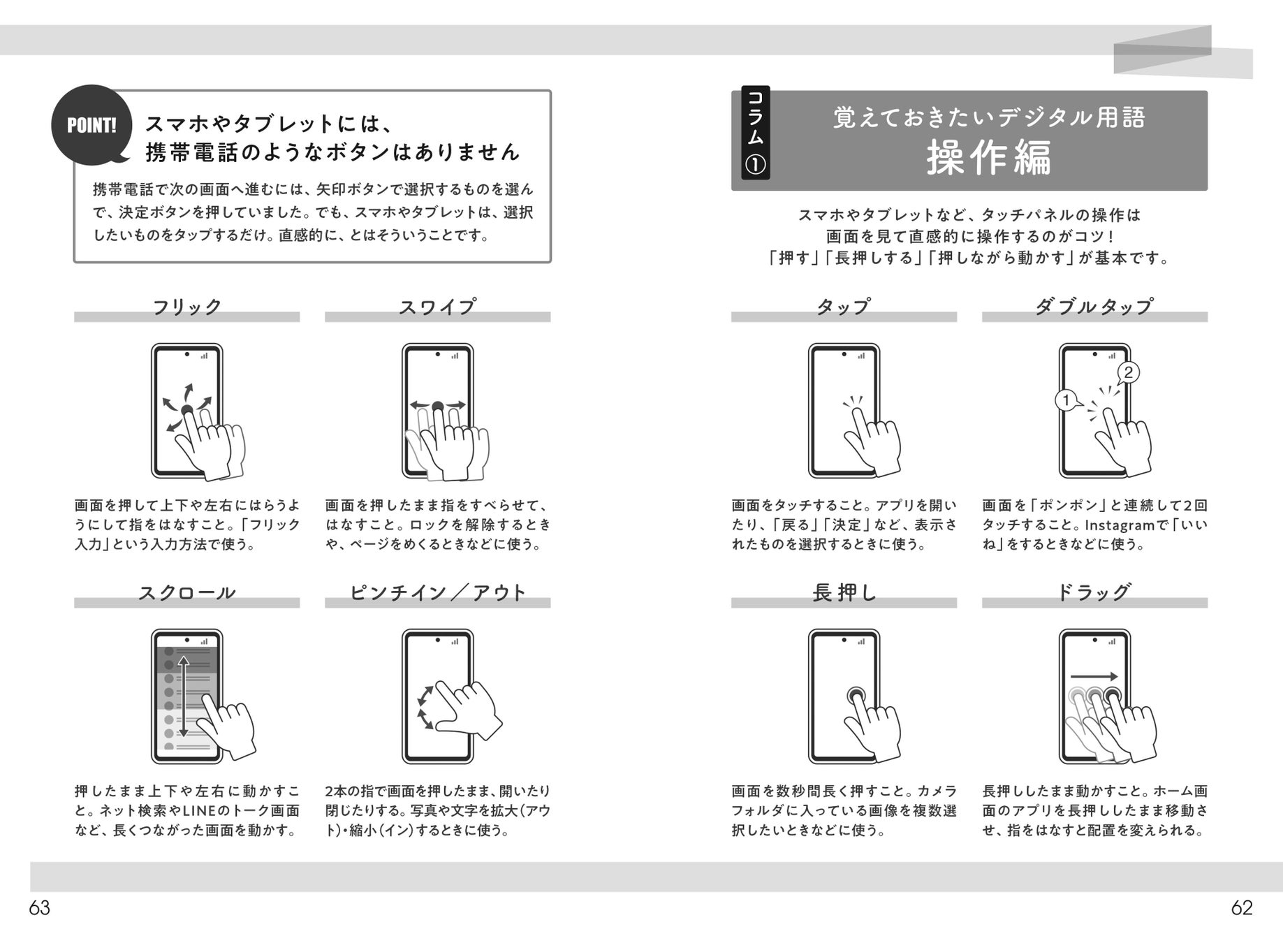本書はスマホの使い方を教えるガイドブックではないが、この本をきっかけにスマホデビューするデジタル初心者の方や、スマホを持っているだけで操作が苦手な方のために、これだけは知っておきたい情報がコラムにまとめられている。