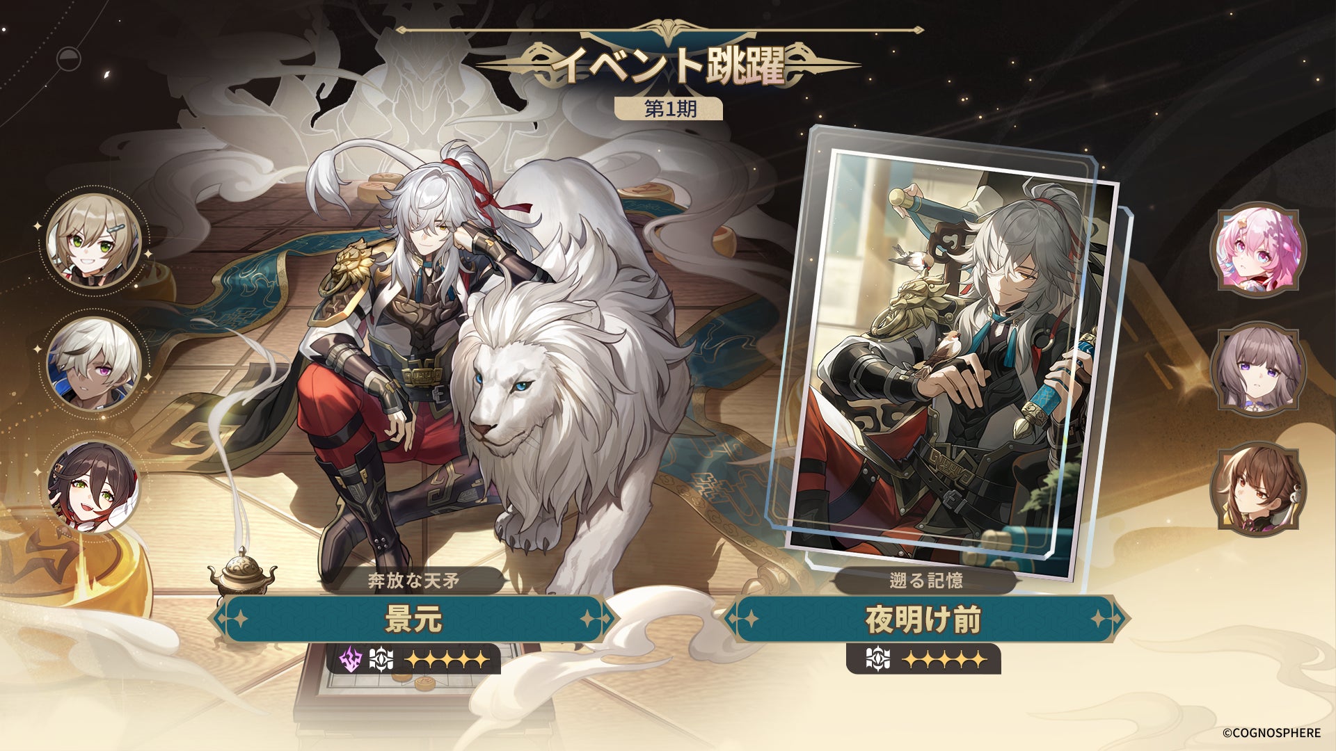 同時開催のイベント跳躍・光円錐「遡る記憶」では、限定星5光円錐「夜明け前」が再び登場し、出現率がアップ!