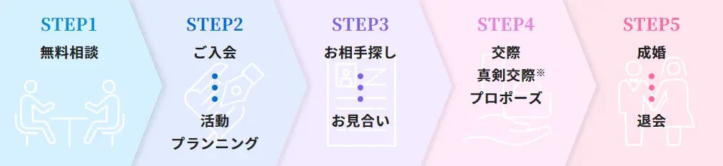 この時点で一人に絞る必要はなく、複数のお相手とお見合いやデートをしながら、真剣交際に進むべきお相手をカウンセラーと相談して決めます。
