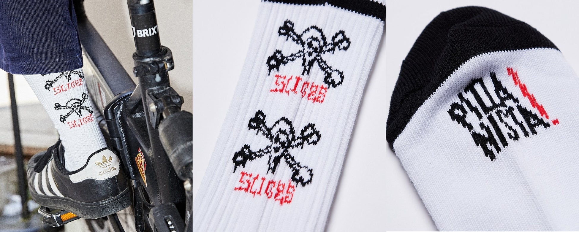 ピザニスタでは、サルマン氏との深い信頼関係や強いつながりにより実現した、他では絶対に真似の出来ない数々の、【オールドスクールブランドのグラフィックを、"PIZZA"にまつわるモチーフにアレンジしたオマージュグラフィック】が存在し、アメリカ本国では高い人気を誇ります。