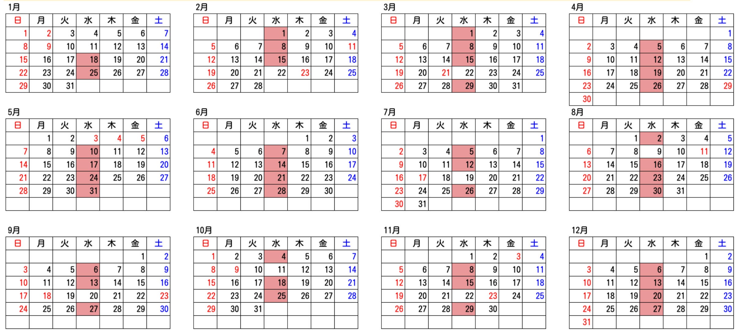※赤背景が2023年度「cocone my time / my day」の対象日