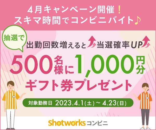 『ショットワークスコンビニ』から、キャンペーン期間中のバイトに応募し、1回以上「出勤」された方の中から、