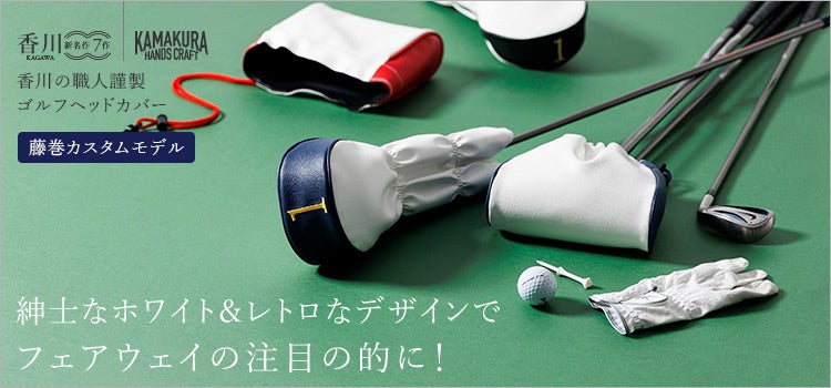 香川のゴルフアイテムメーカー【KAMAKURA HANDS CRAFT】による、職人謹製のゴルフクラブカバー。高級家具レベルの日本製合成レザーを贅沢に使用しており、タフで防水・防汚性も◎。変色しにくくいつまでも白が続きます。