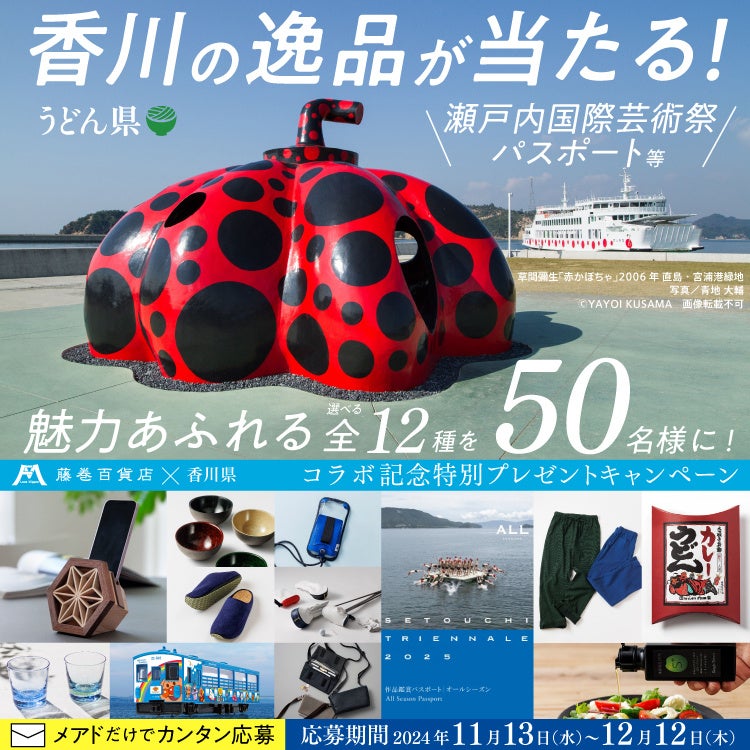 香川の魅力を手に入れよう!藤巻百貨店 銀座店(東急プラザ銀座B1階)にて2024年11月20日(水)よりポップアップイベントスタート!豪華商品が当たる特別プレゼントキャンペーンも同時開催!