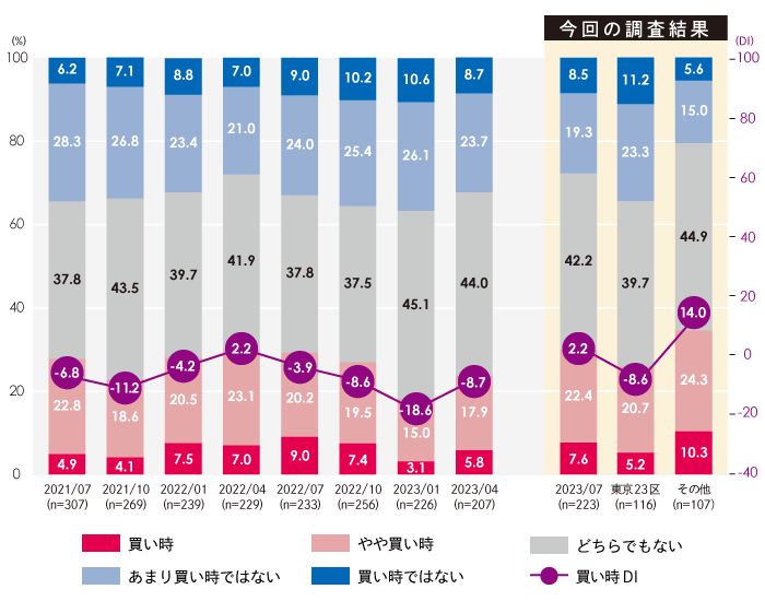 ☑ 今が買い時という回答が増加し、買い時DI※もプラスに転換