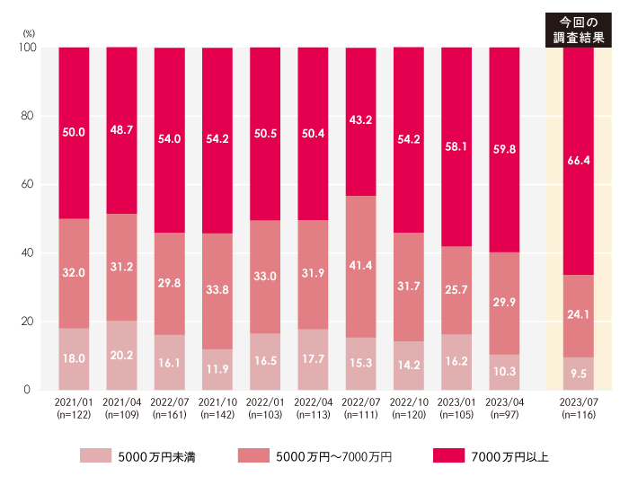 マンション価格は今後さらに上がるとの予想が増加 都区部の購入検討価格帯も7,000万円以上が初の60%超え