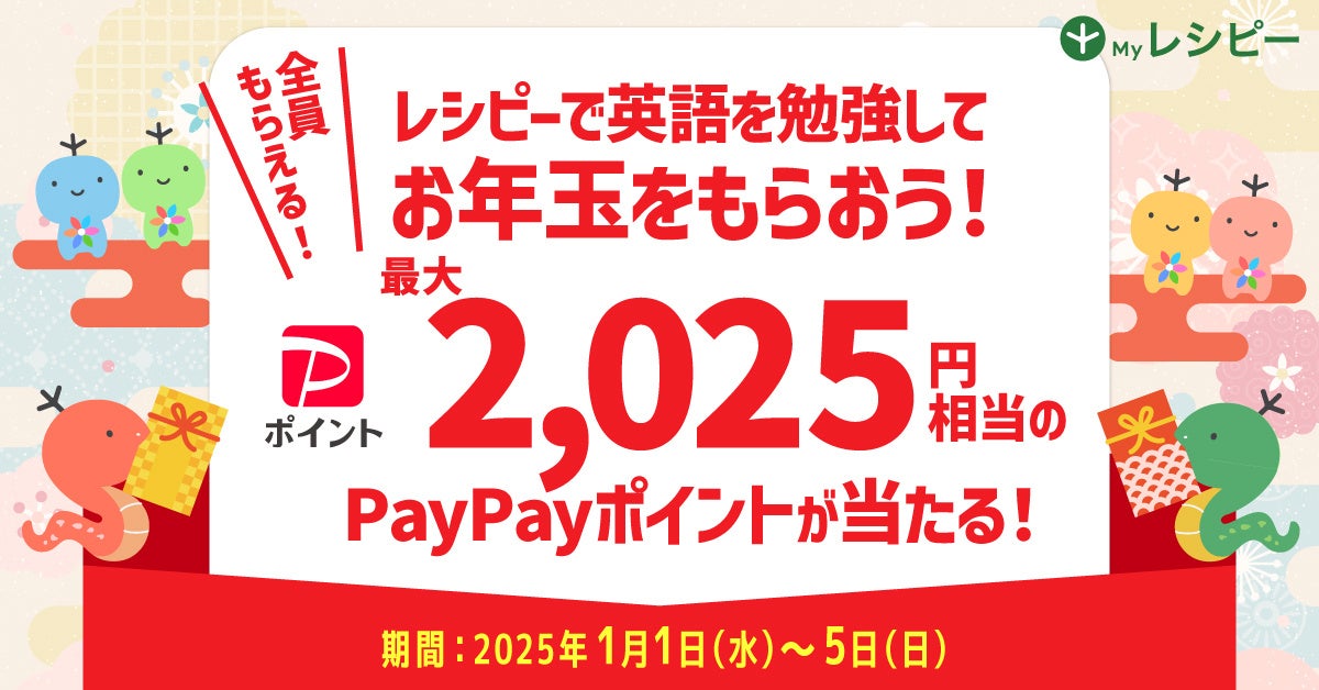 【レシピー新春お年玉キャンペーン第一弾】レシピーで英語を勉強してお年玉をもらおう - 株式会社ポリグロッツ- 2025年1月1日(水)~1月5日(日)