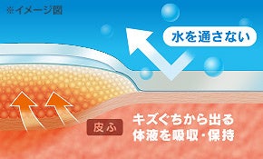ハイドロコロイド素材のモイストパッド(TM)がキズぐちから出る体液を吸収・保持し、キズを治すのに最適な潤い環境を保ちます。かさぶたをつくらず、新しい皮ふが早くきれいに再生されます。