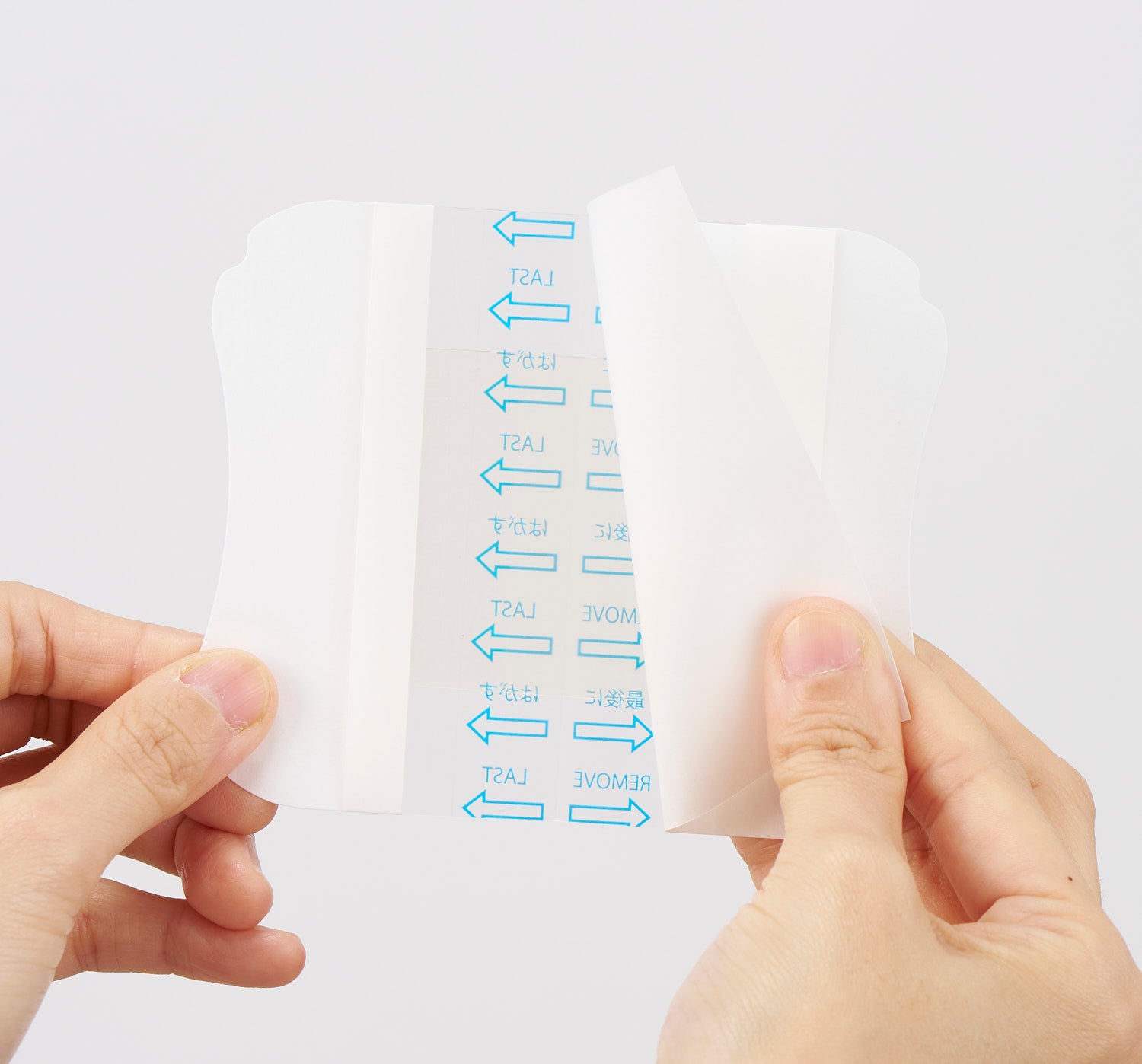 透明な防水フィルムが水をシャットアウトします。テープもパッドも透明なので、貼っていることが目立ちません。