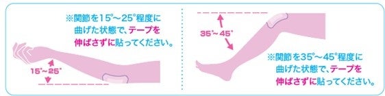 ひじやひざの関節部に貼るときは、関節を少し曲げた状態でテープを伸ばさずに貼ってください。