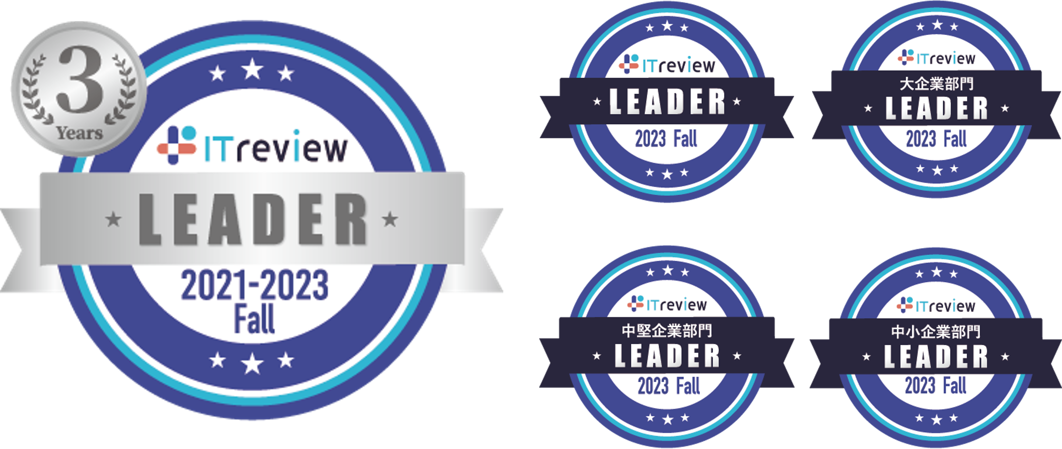 「ITreview Grid Award」では、WEBサイト上に投稿されたレビューデータをマッピングしたITreview Gridにより、満足度・認知度の双方が高い製品を「Leader」に、満足度が高い製品を「High Performer」としてそれぞれ四半期ごとに選出しております。