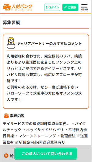 ・転職コラム:履歴書や職務経歴書の書き方等の就転職時に必要なノウハウ、リハビリテーション専門職の労働環境、結婚・出産後の復職、定年後の生活についてなど、働く際の疑問や悩みに応えるコラムを多数掲載