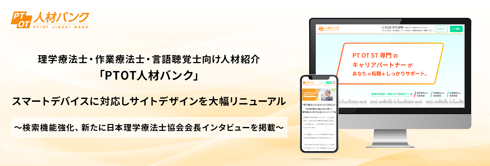 理学療法士・作業療法士・言語聴覚士向け人材紹介「PTOT人材バンク」スマートデバイスに対応しサイトデザインを大幅リニューアル