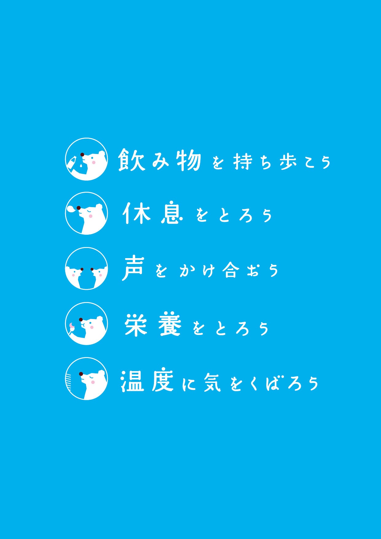 熱中症を避けるためには、身近な人と声をかけ合うことが有効です。ただ「熱中症にならないように、お互いに声をかけ合いましょう」といっても、どんなアクションを取ればいいかわからない読者に向けて、「5つの声かけ」を元にユーザーへ呼びかけを行っています。