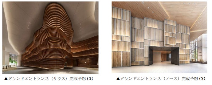 「大地から生える二本の大樹」というデザインコンセプトは、共用部やランドスケープのデザインにも息づいています。内装共用部のデザインコンセプトは、「Grand TREE RING」(大樹の年輪)。大樹が年月をかけて重ねてきた輪(時間)、人々が繋がる輪(空間)、古きものから新しい未知へと広がる輪(未来)を年輪で表現し、人々の暮らしに心地よい空間を表現いたします。