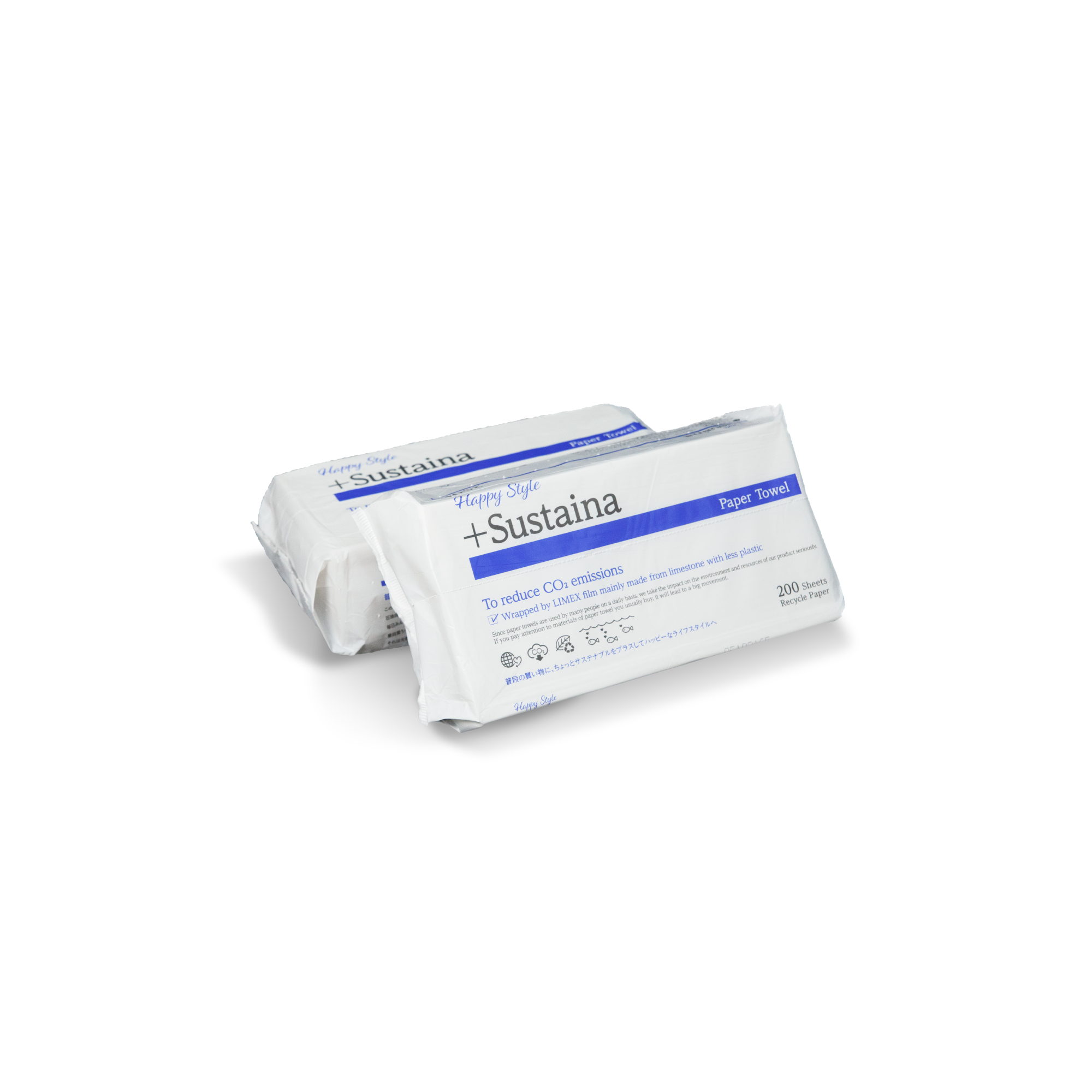 アストのトイレットペーパーとハンドタオルの外装フィルムに、石灰石を主原料とする「LIMEX Pellet」(インフレーション成形グレード)が採用