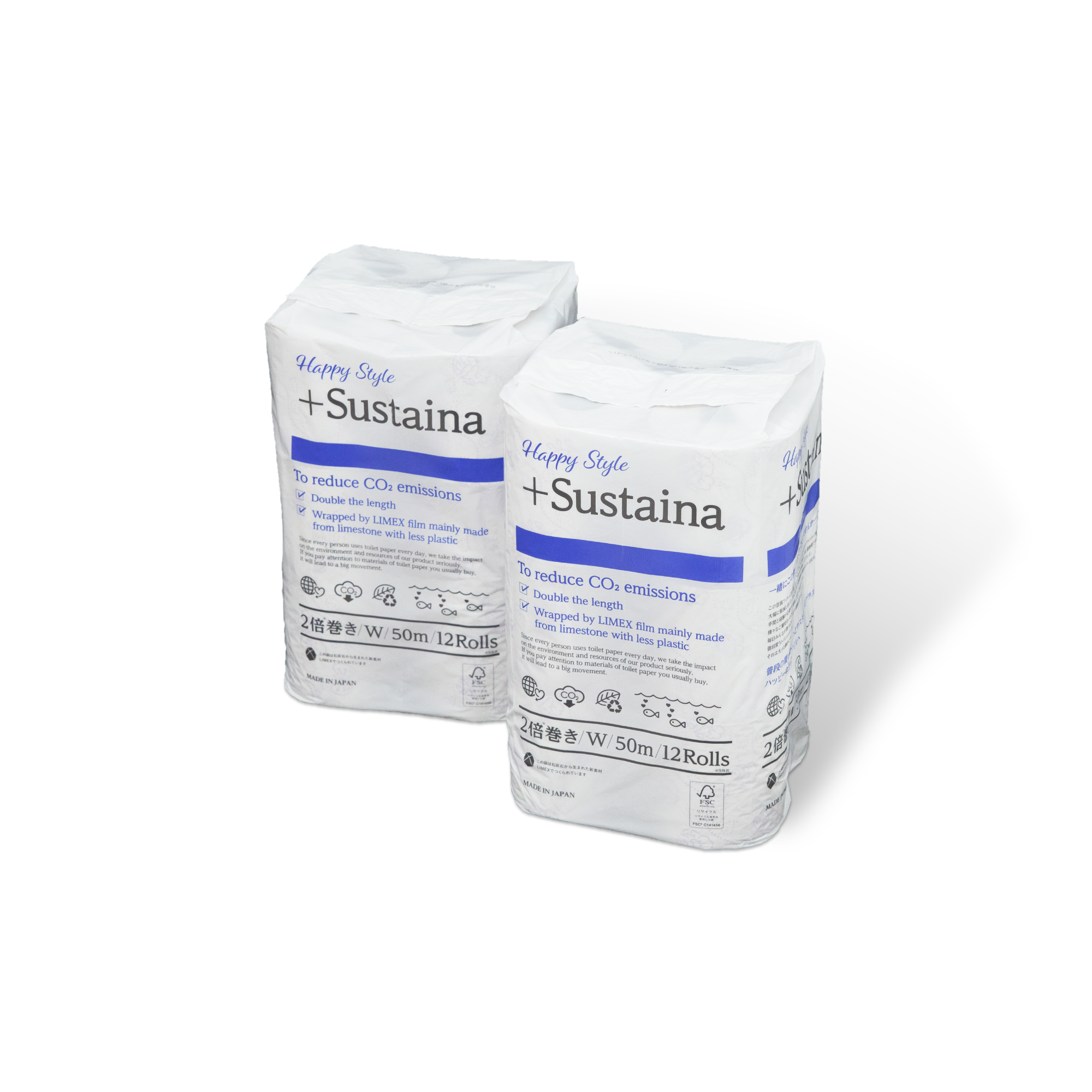 経済産業省統計によるとトイレットペーパーの年間生産量は100万トン超であり、一般的な12ロール入りのトイレットペーパーに換算すると7億パックにものぼります。家庭紙*2のプロフェッショナルであるアストは、一般消費者が参加しやすい環境貢献施策として、家庭紙の包装資材に使われているプラスチックを減らすことに着目。今回、LIMEXの環境性能を評価し、業界初となる家庭紙包装資材への採用に至りました。