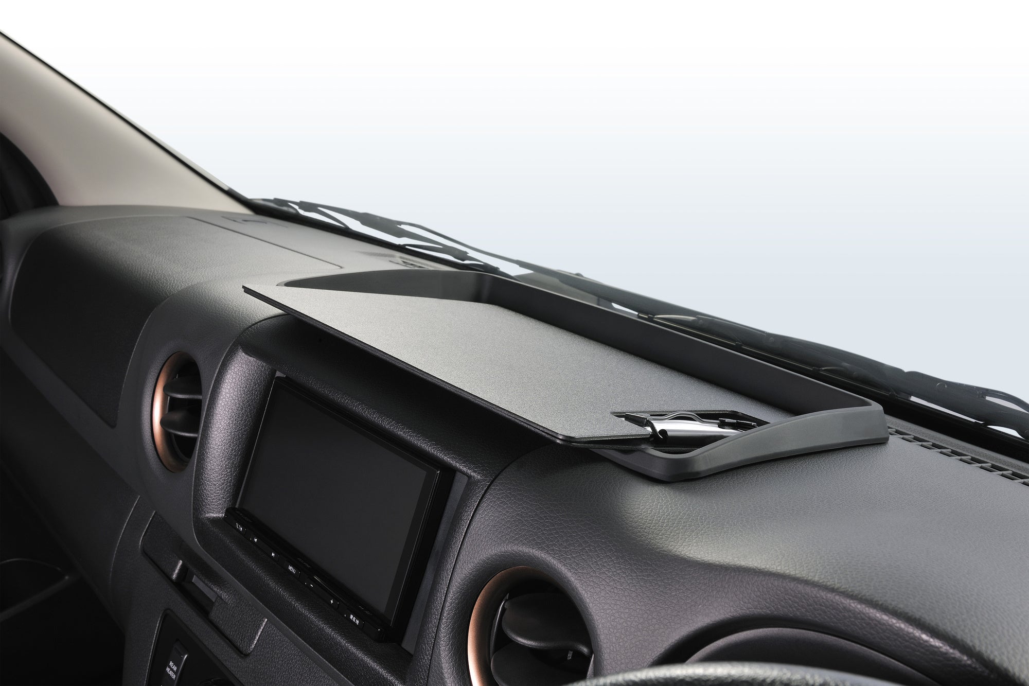 ダッシュボード上の凹みにぴったり収まる設計