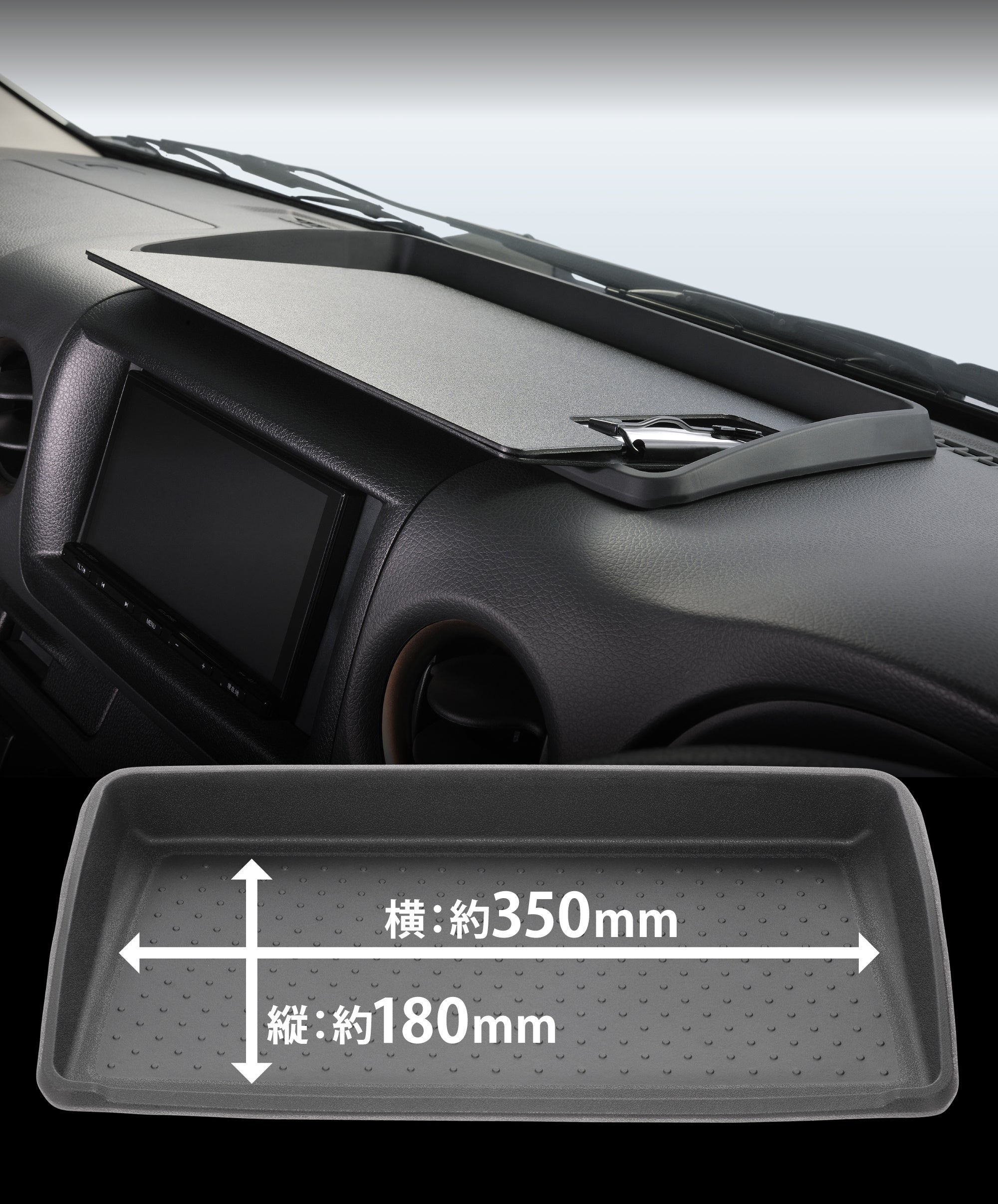 内寸約200×160mmの小物置きスペースで、スマートフォン・財布・チケット・電子タバコなどの一時置きに最適。シリコン素材で小物がすべりにくい