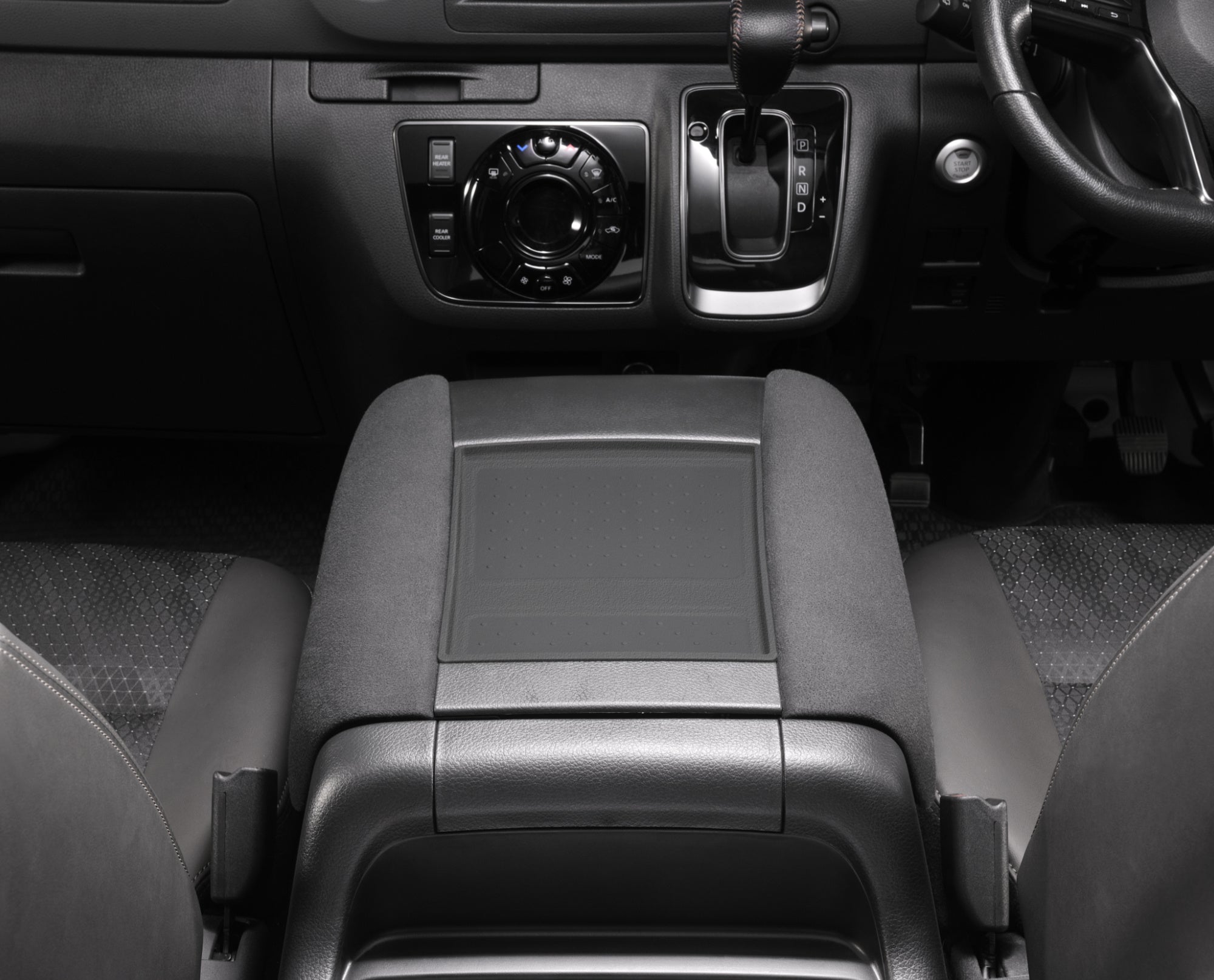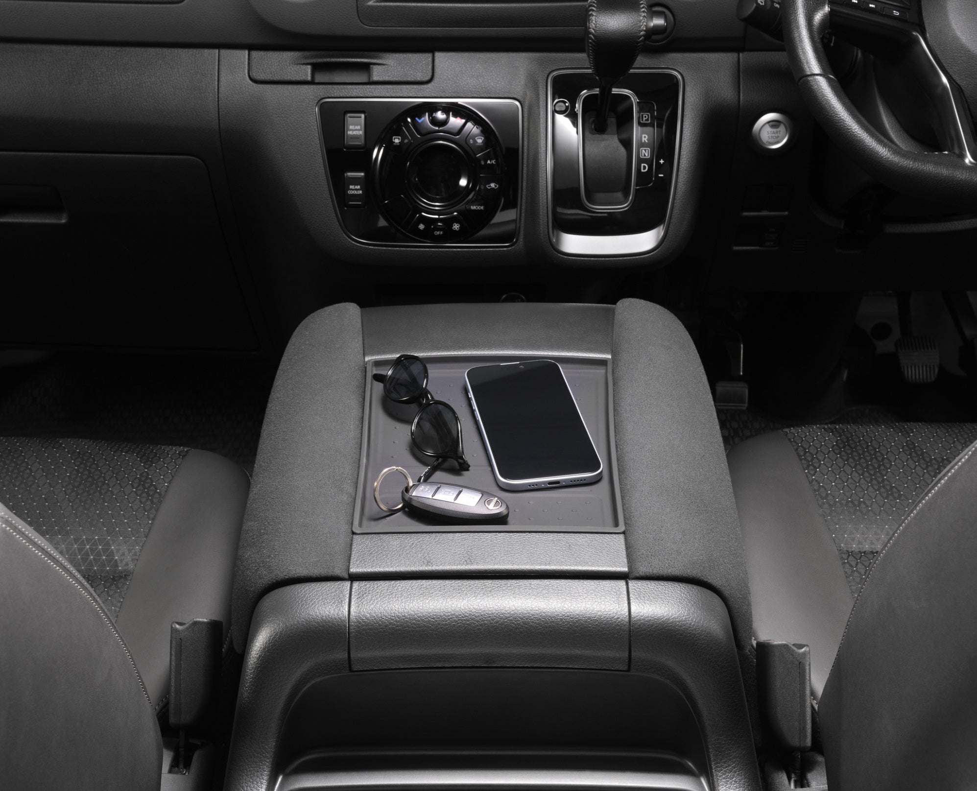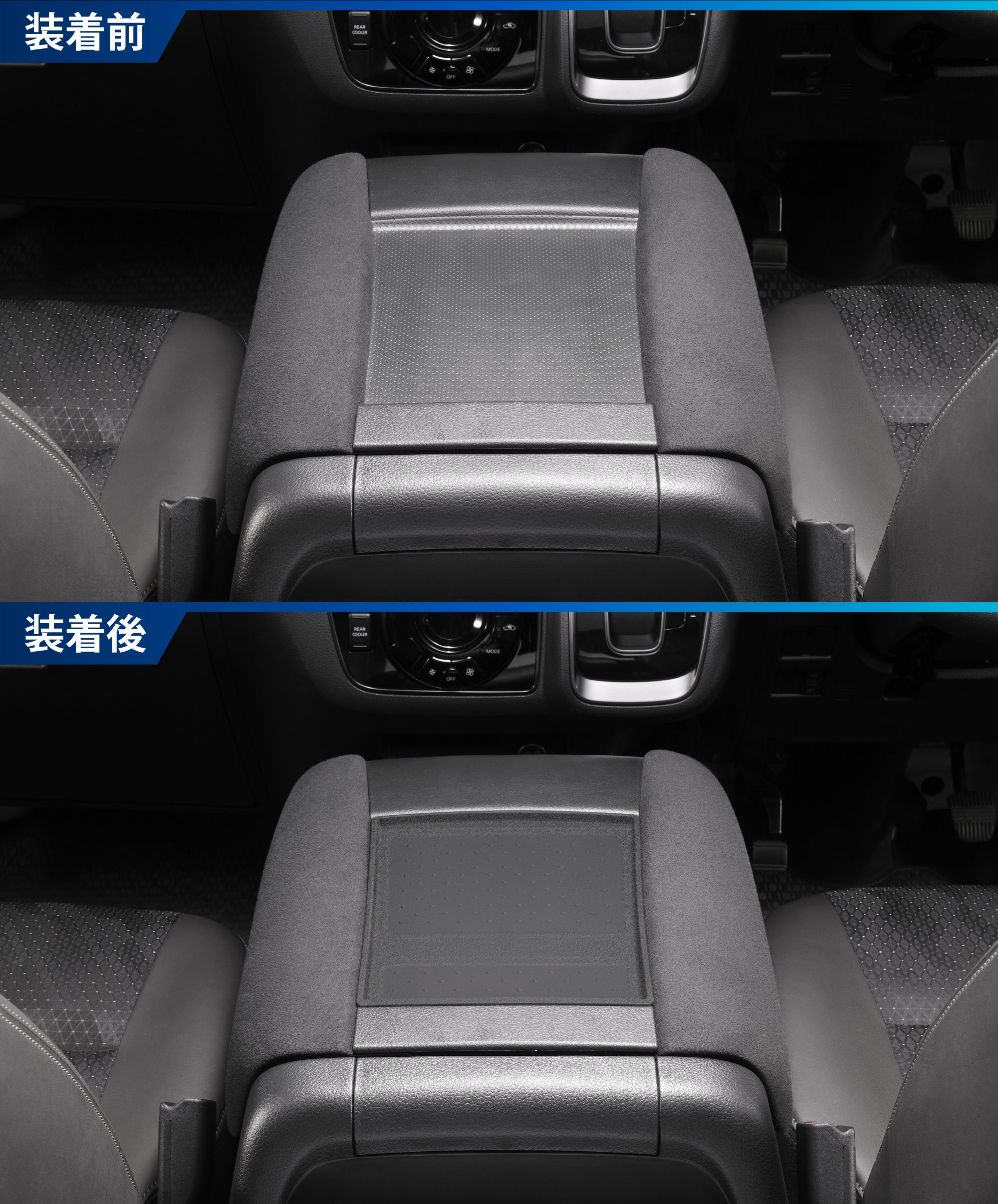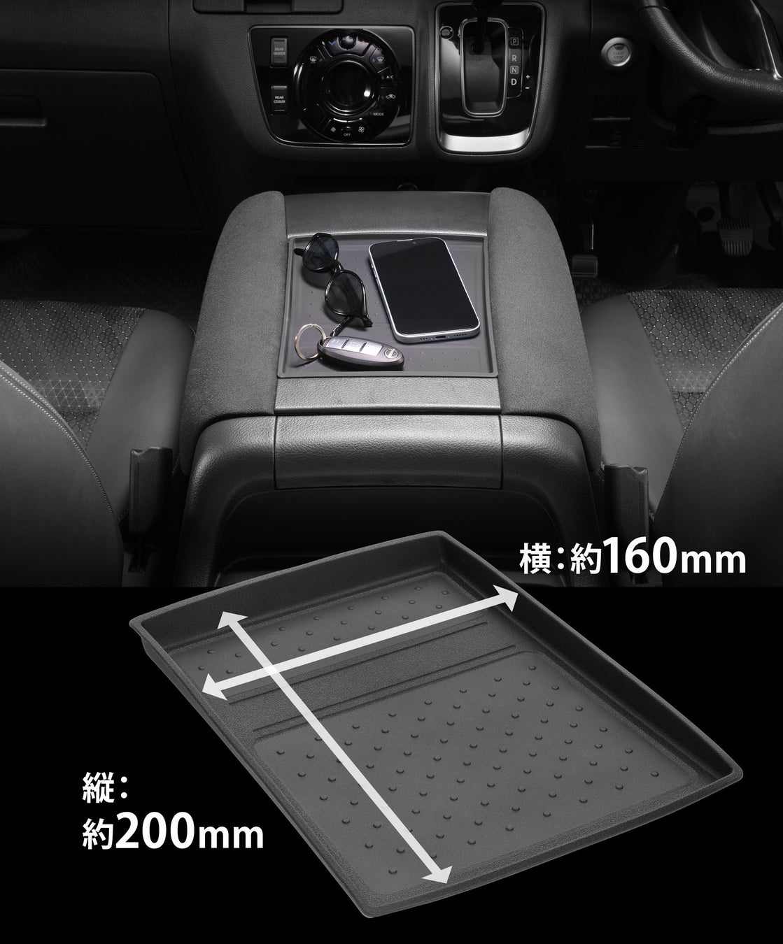 センターコンソールのアームレスト間の凹みに合わせた設計で、ジャストフィット