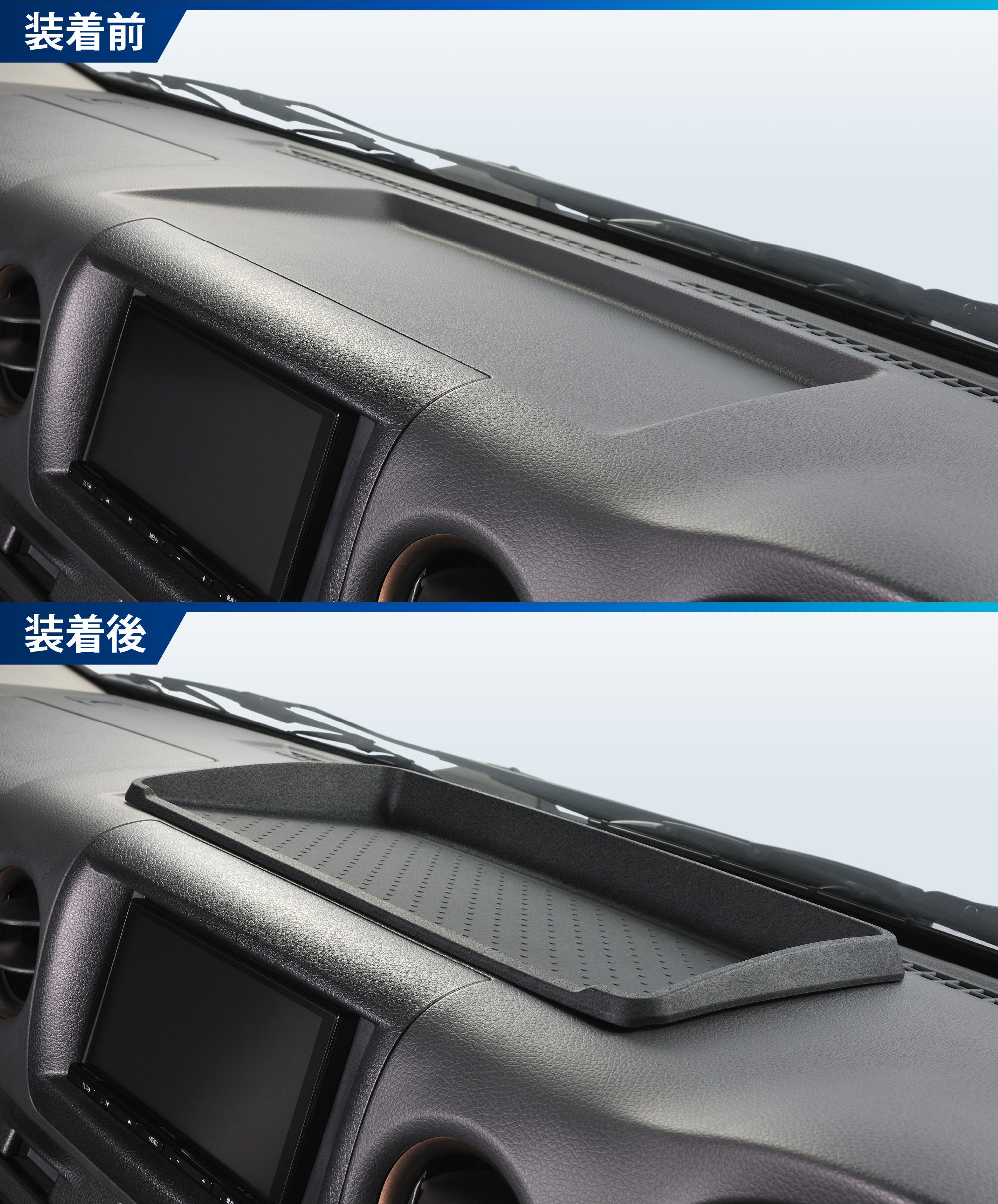 接着剤や両面テープは不要で、ダッシュボード形状に合わせて置くだけで設置完了