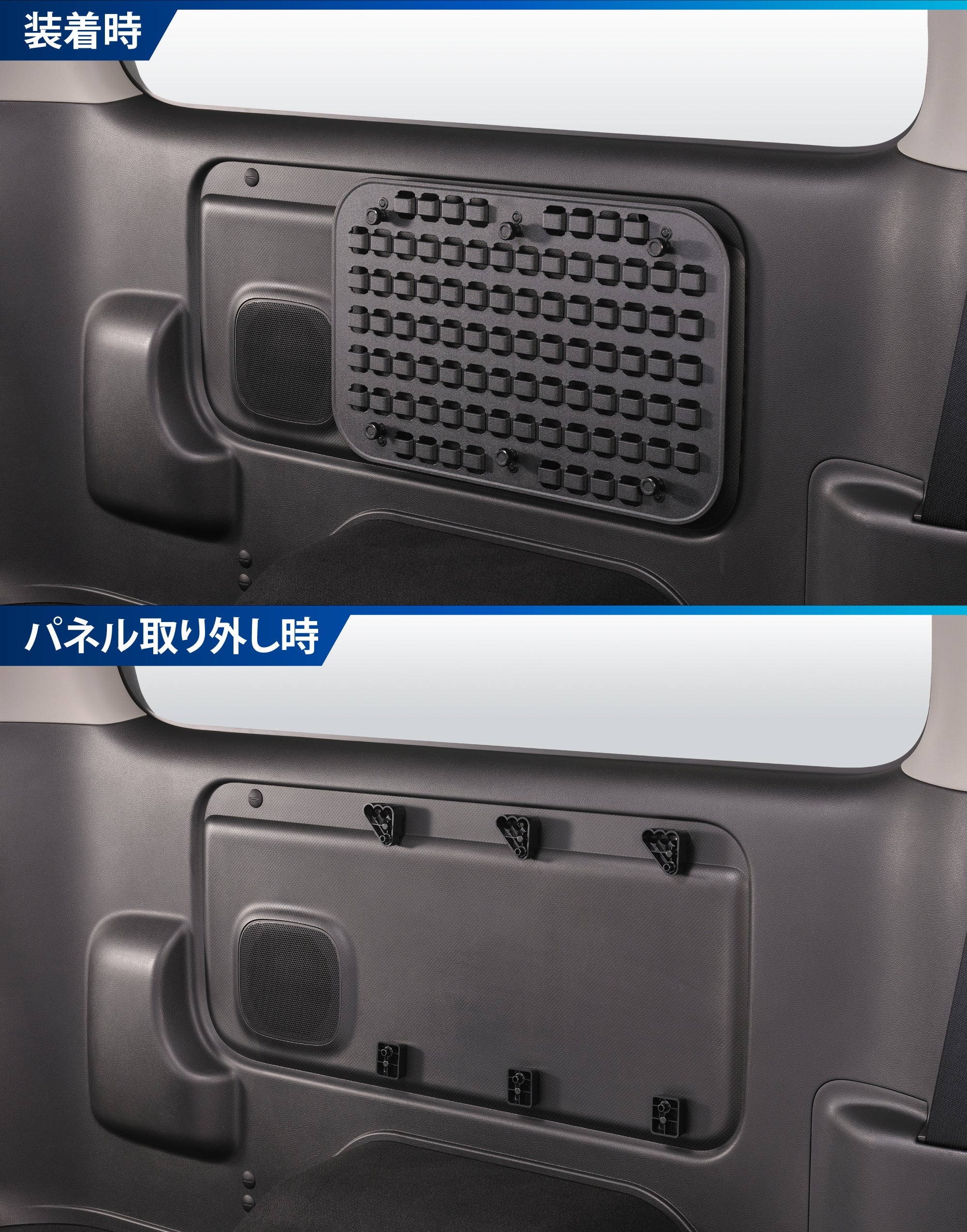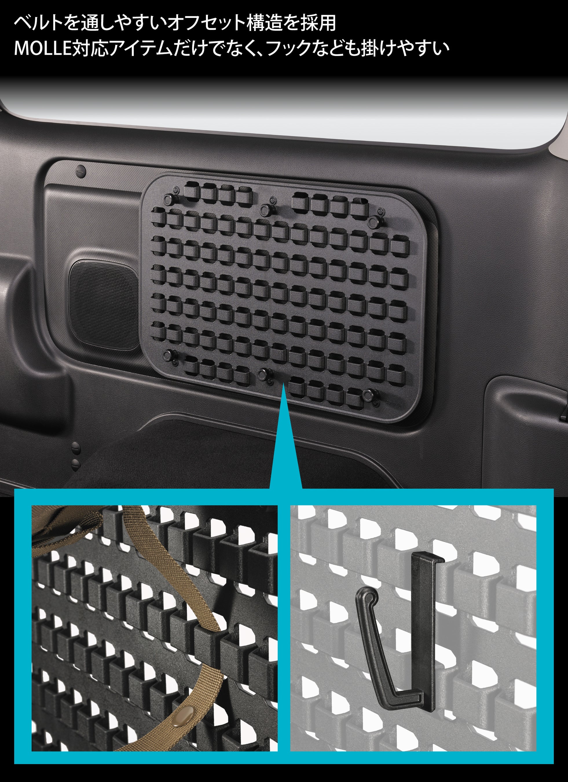 専用設計トレー2品、カスタムを兼ねたモールパネルなど、収納アイテムが充実