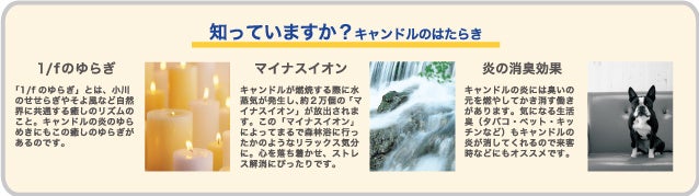 「暮らしに癒しとぬくもりを」をコンセプトに、創業90年を越えるメーカーとしての製造ノウハウ、海外ブランドとのパートナーシップの両方を活かしたウエディングやパーティー、日常生活の中での様々なシーンを彩る“キャンドルのある風景”を提案しています。表参道(港区南青山4-25-12)にキャンドルスクールを併設した直営キャンドルショップがございます。