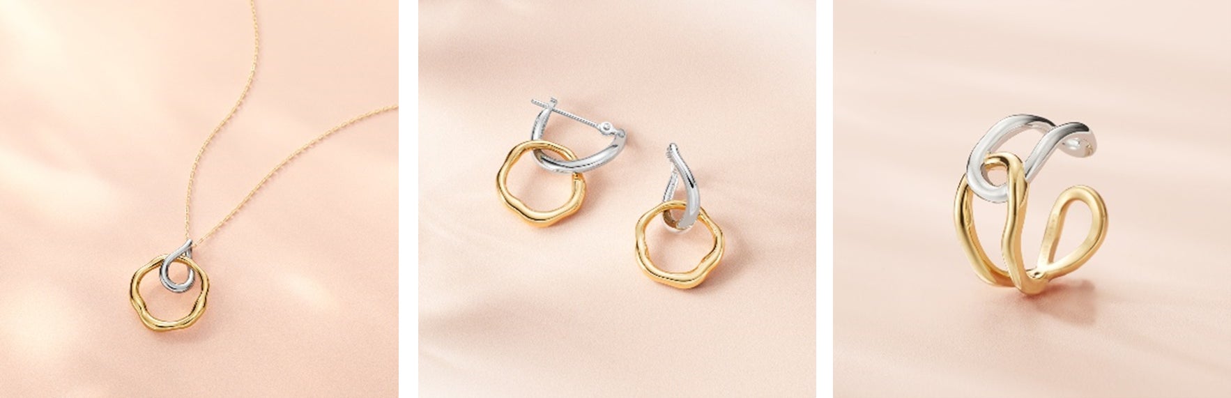 夜空に浮かぶ大きな丸い月をイメージしたシリーズも登場。シルバーとイエローゴールドカラーのコンビカラーがトレンド感を感じさせる、エッジの効いたデザインに仕上げました。厚みのある秋服にも合わせやすいロングネックレスや、パーツの取り外しが可能なピアス、リバーシブル仕様のリングなど、コーディネートの幅を広げてくれるアイテムはシーンレスに活躍してくれます。