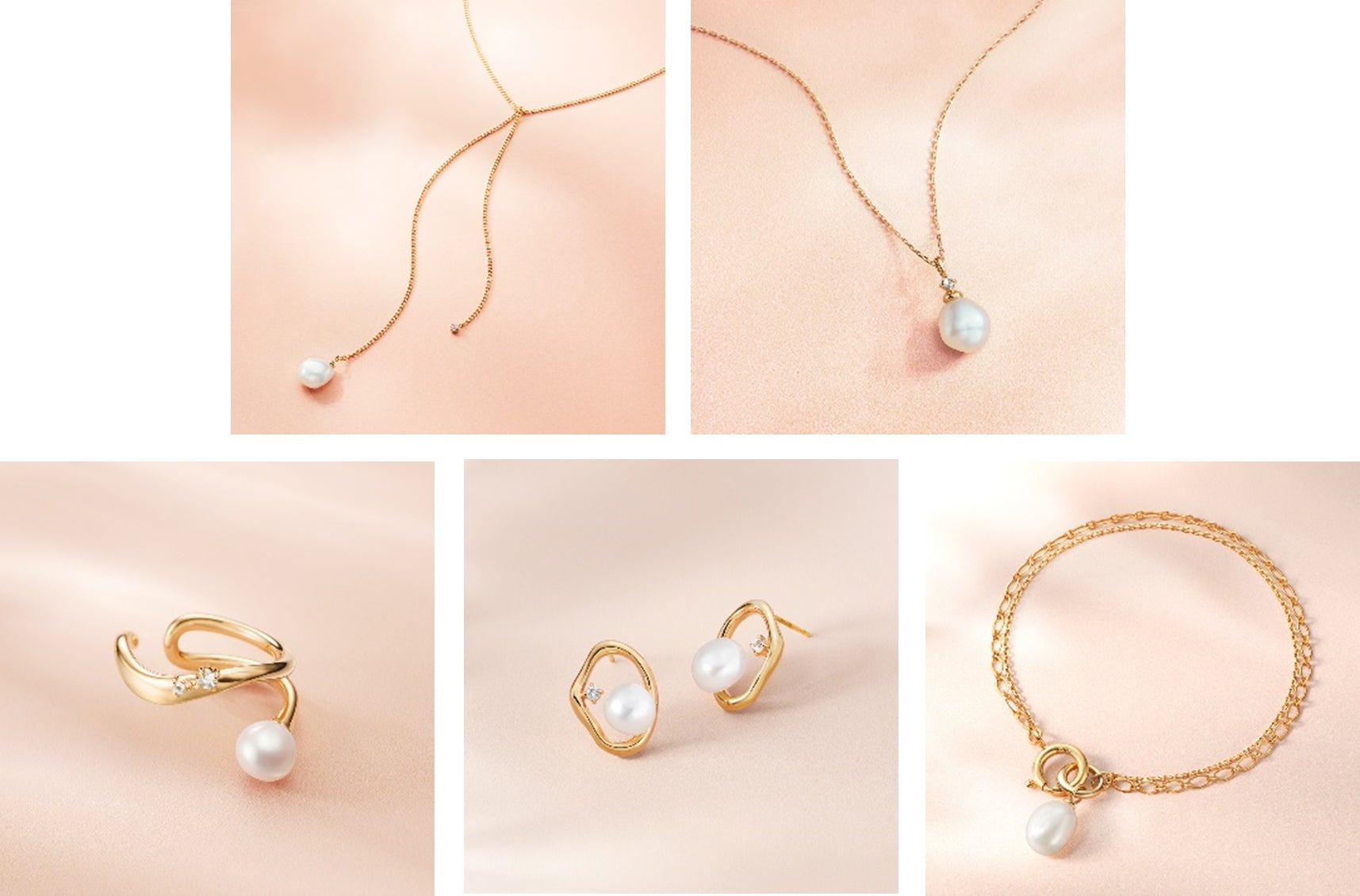 秋特有のゆったりとした時の流れを、ニュアンスの効いた地金のラインで表現したシリーズ。有機的な形状が魅力のバロックパールとイエローゴールドカラーの組み合わせが、こなれ感を出しつつ上品で洗練された印象へと導きます。ロングタイプのラリエットネックレスなど動きのあるアイテムをコーディネートに取り入れて、秋の落ち着いた色合いのスタイリングに華やかさを添えて。
