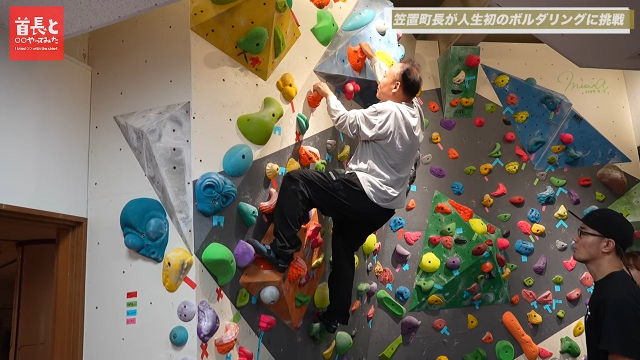 笠置町長・山本篤志氏が自ら地元の魅力をアピールすべく、YouTube番組『首長と○○やってみた』でボルダリングに初挑戦!