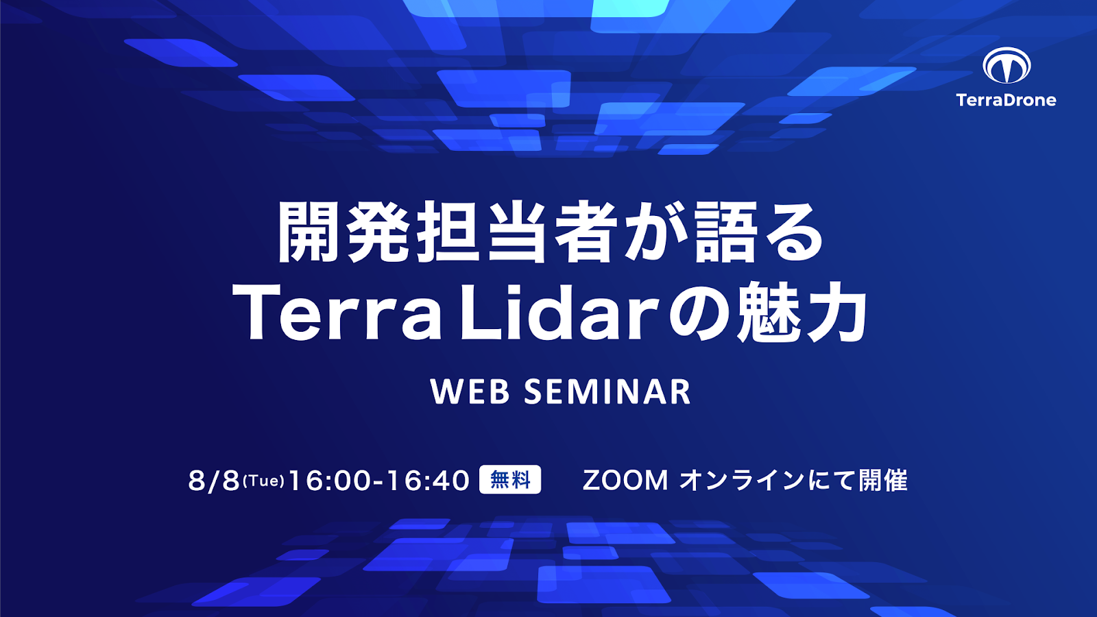本ウェビナーは自社開発の3次元測量用ドローン「Terra Lidar One / Terra Lidar X」について開発担当者からの解説、参加者の方からの質疑に回答する形式となります。