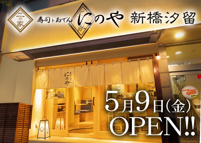 株式会社一家ホールディングスの連結子会社である株式会社一家ダイニングプロジェクト(本社:千葉県市川市、代表取締役社長:武長 太郎 以下当社)が運営する、創作寿司と日替わり入荷の地酒を楽しむことができる寿司居酒屋『寿司トおでん にのや 新橋汐留店』を、2025年5月9日(金)、港区東新橋にオープンいたしますのでお知らせいたします。オープン記念として、当店のOPENチラシをお持ちのお客様におすすめ日本酒をグラスで1杯サービスいたします。(2025年8月末まで)