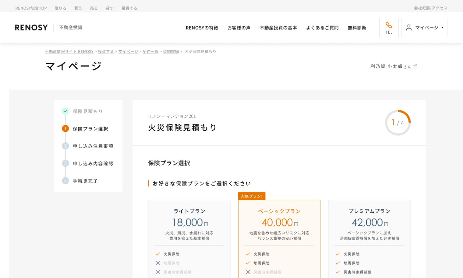 投資用不動産の購入者は、不動産購入における融資を受ける際に火災保険の加入が必要となるケースが多く、保険加入が不動産購入時に発生する多様なタスクの一つとなっており、お客様から「シンプルかつ効率的に火災保険に加入したい」といったニーズをいただいていました。