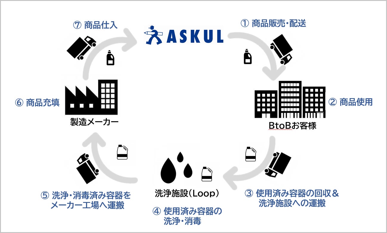 アスクル株式会社(本社:東京都江東区、代表取締役社長:吉岡晃、以下「アスクル」)は本年1月より、Loop Japan合同会社(本社:神奈川県横浜市、アジア太平洋統括責任者:エリック・カワバタ、以下「ループ・ジャパン」)が2021年11月に開始した、リユース容器を使用した業務用商品販売プラットフォーム“Loop Professional”を具体的に進めていくための実装調査(以下「本実装調査」)に参加します。本実装調査は、ループ・ジャパンが、すでにBtoCで展開している容器リユースモデルをBtoBにおいて実装することを目指して参加企業とともに実施するもので、東京都の“革新的技術・ビジネスモデル推進プロジェクト”の補助金対象事業(※1)として選定されています。