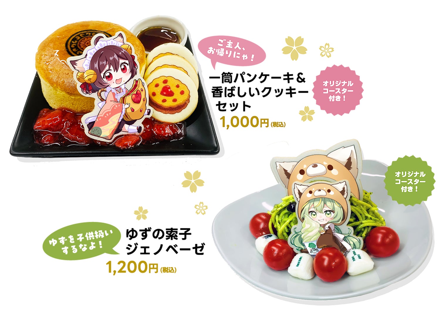 「一筒パンケーキ&香ばしいクッキーセット」と「ゆずの索子ジェノベーゼ」には、オリジナルコースター付き。