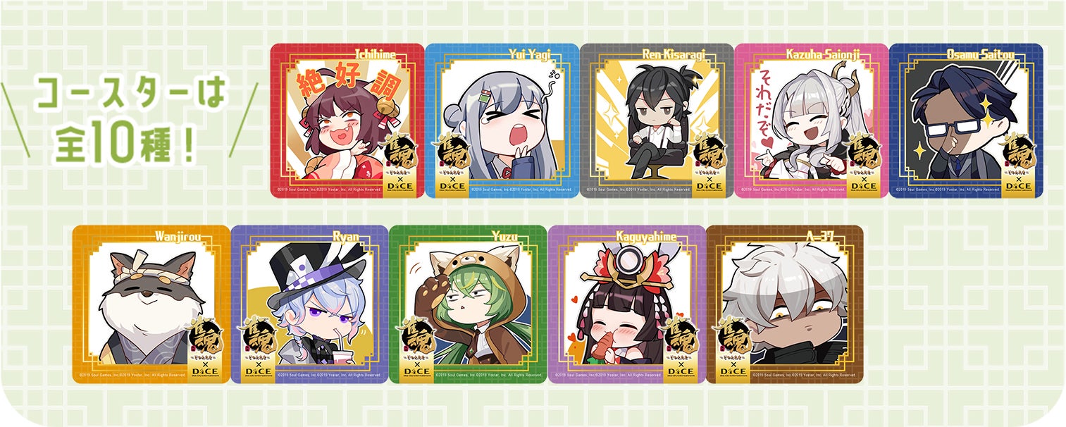 コースターのキャラクターは全10種類(下画像)のランダムとなります。
