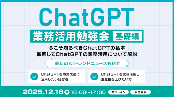 ChatGPTの基礎から、具体的なビジネス活用事例までを分かりやすく解説する勉強会を開催します。すでに400人以上が受講し、その効果を実感しています。ChatGPTをビジネスのインフラとして活用し、業務効率化を図りたい方は、ぜひご参加ください。